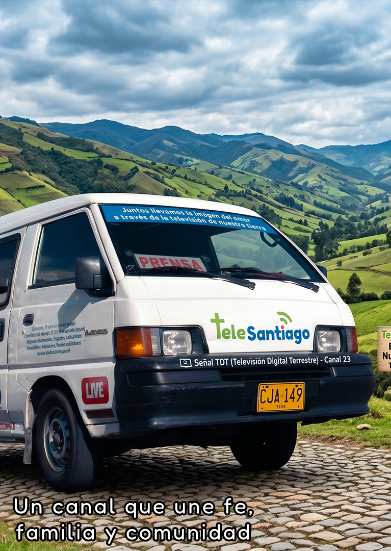En TeleSantiago, canal del departamento de Boyacá, realizamos transmisiones en directo con calidad, fe y compromiso humano, llevando a la comunidad celebraciones como la Semana Santa, Fiesta de la Virgen del Milagro, Eucaristías, ordenaciones, peregrinaciones y eventos especiales como aniversarios, actos empresariales y más. Con pasión y profesionalismo, conectamos corazones a través de producciones que evangelizan, celebran la vida y fortalecen la fe